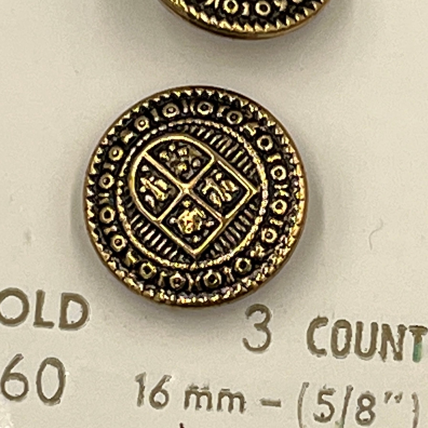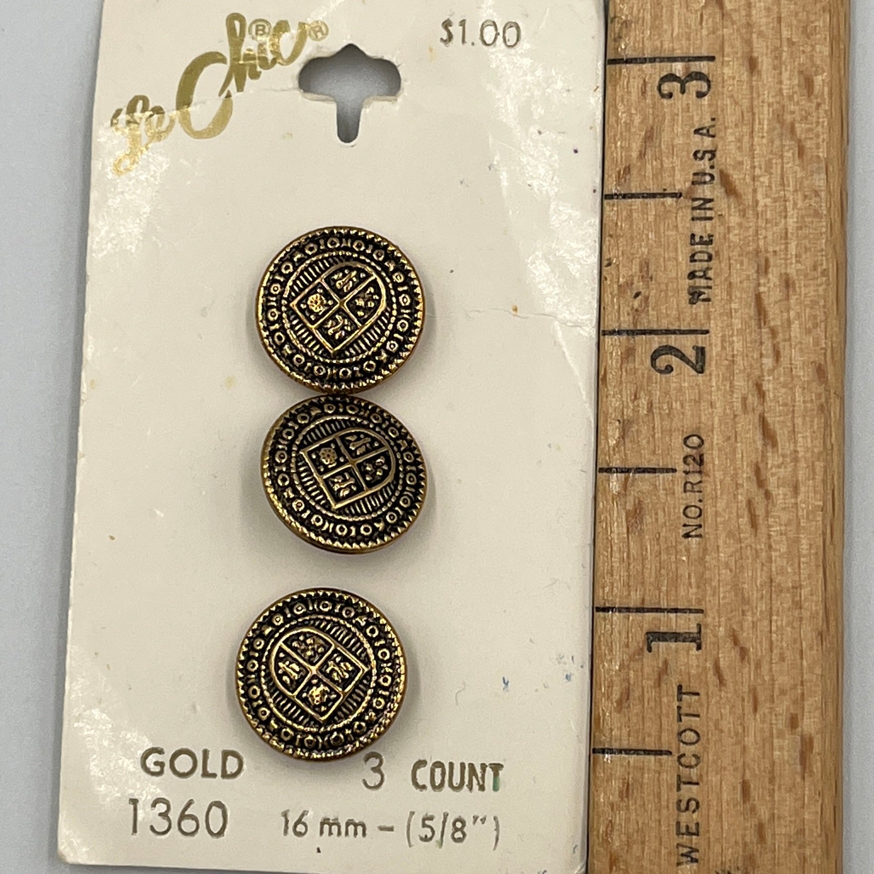 3, 5/8 Inch Vintage Metal Buttons