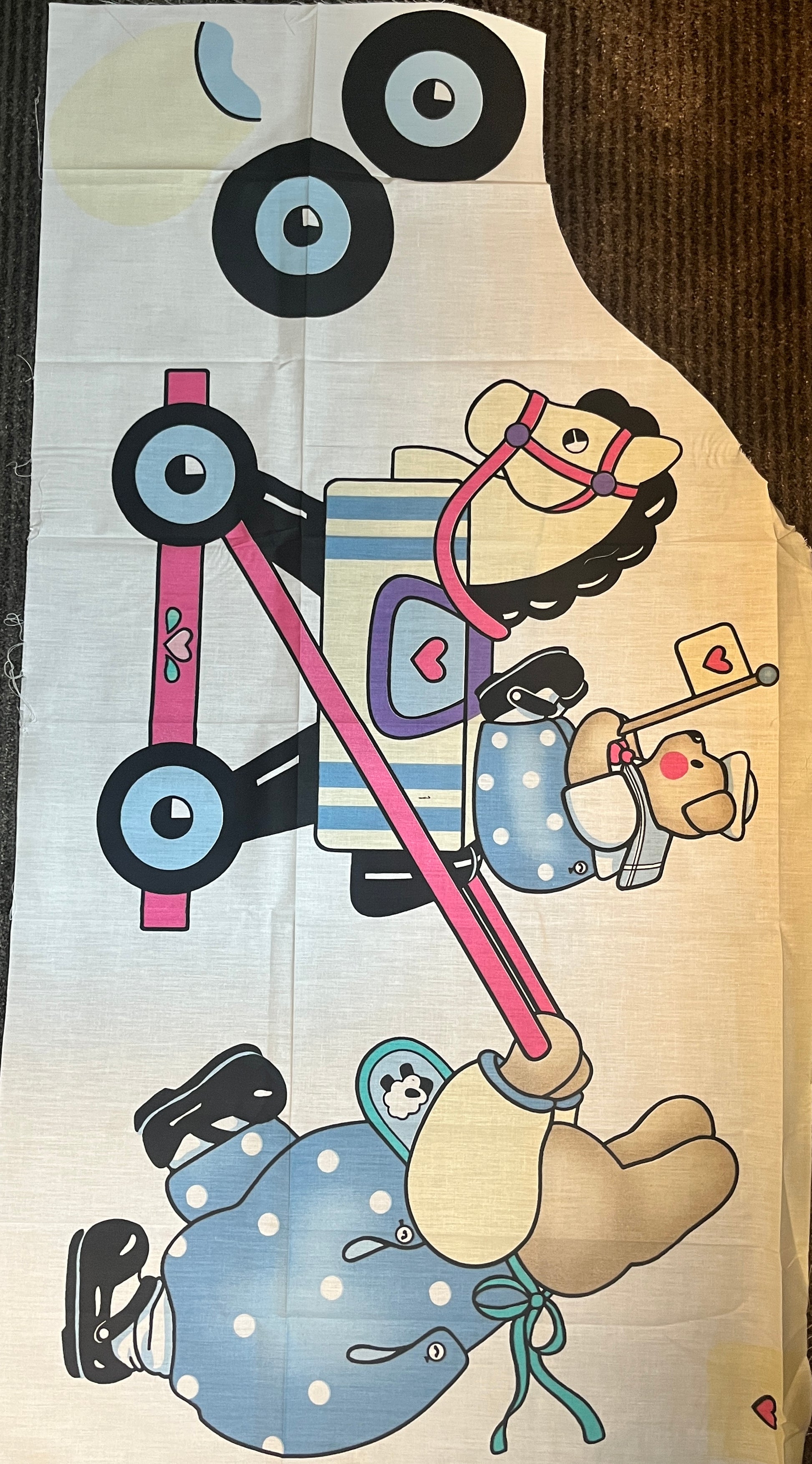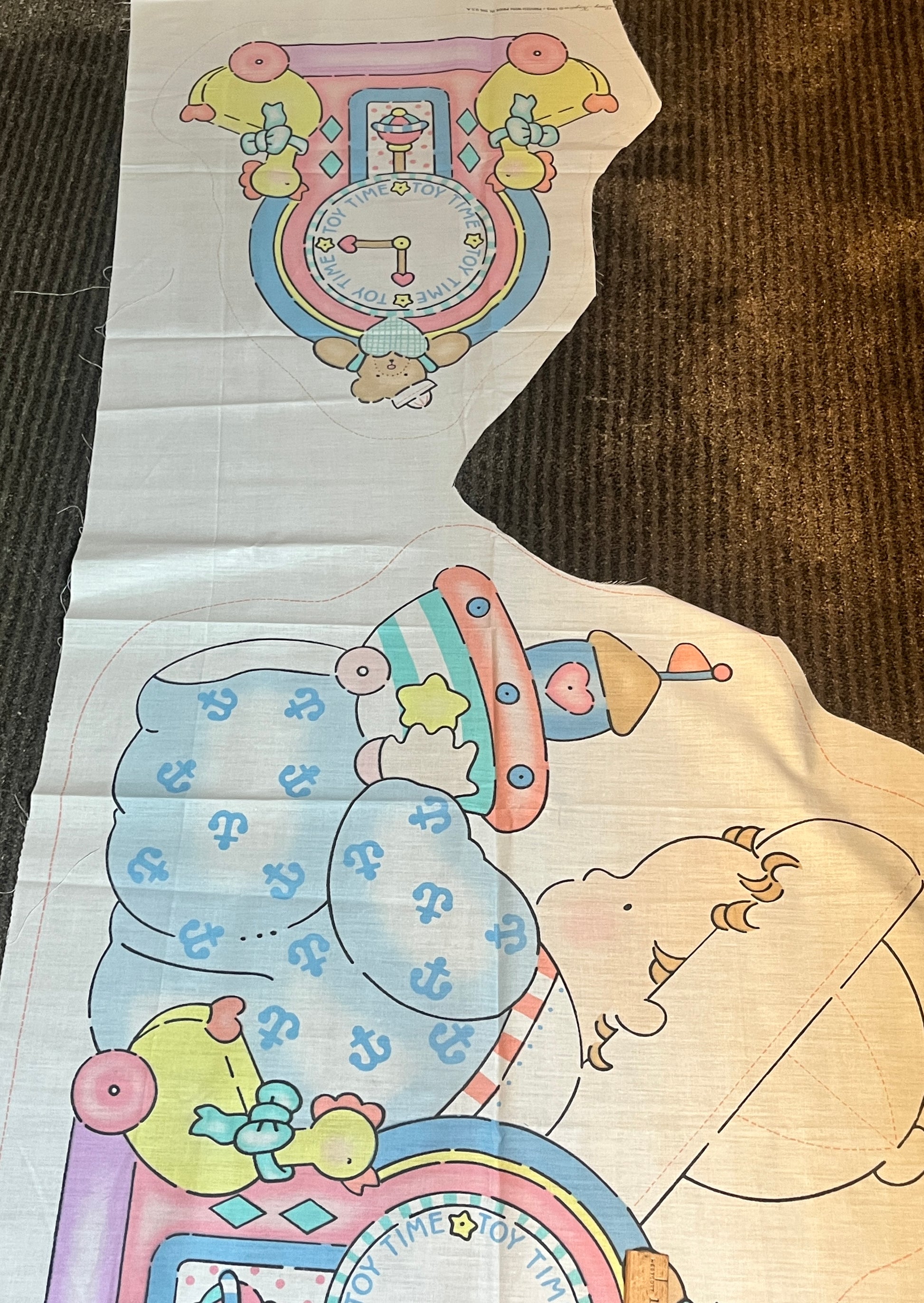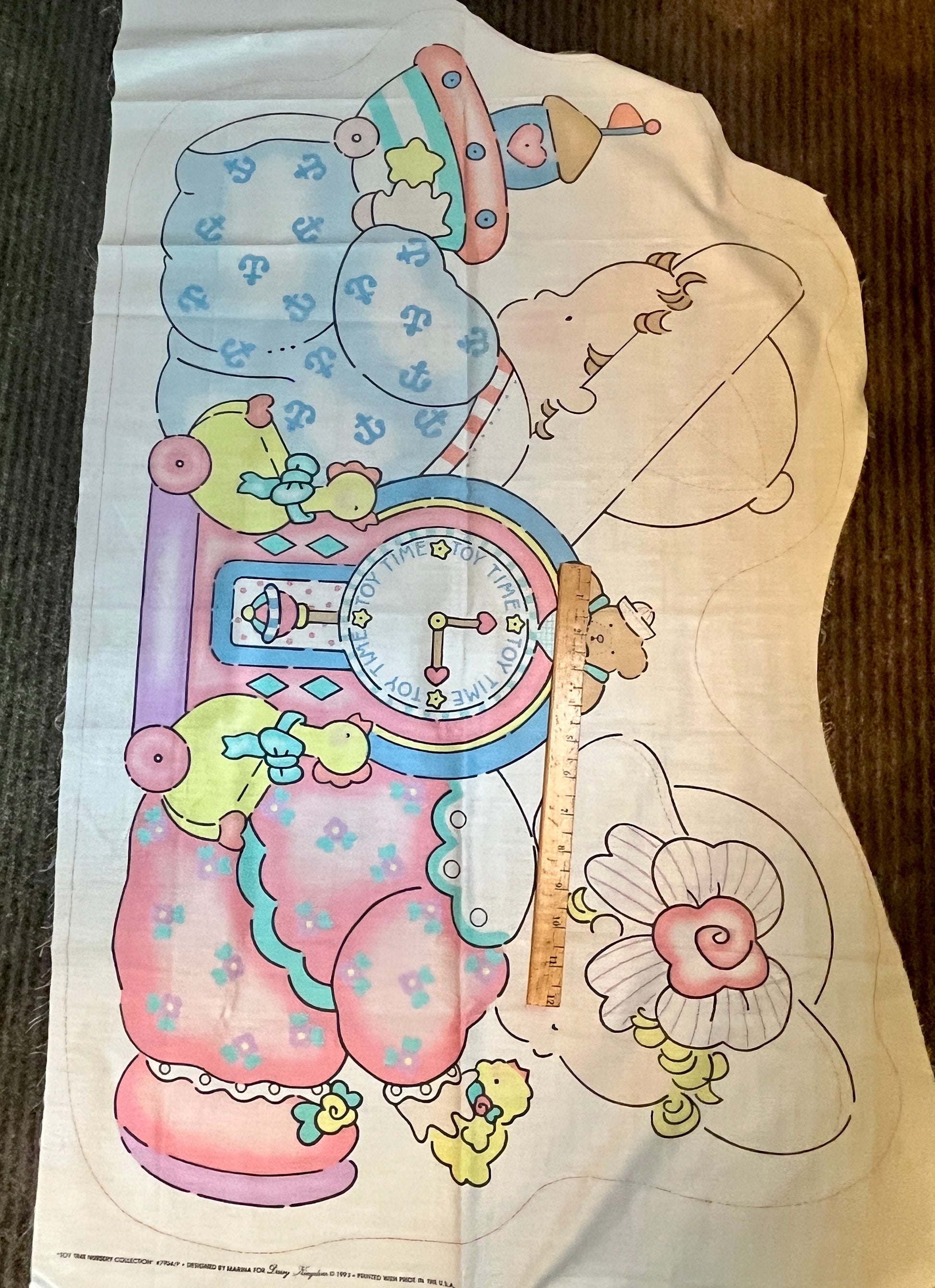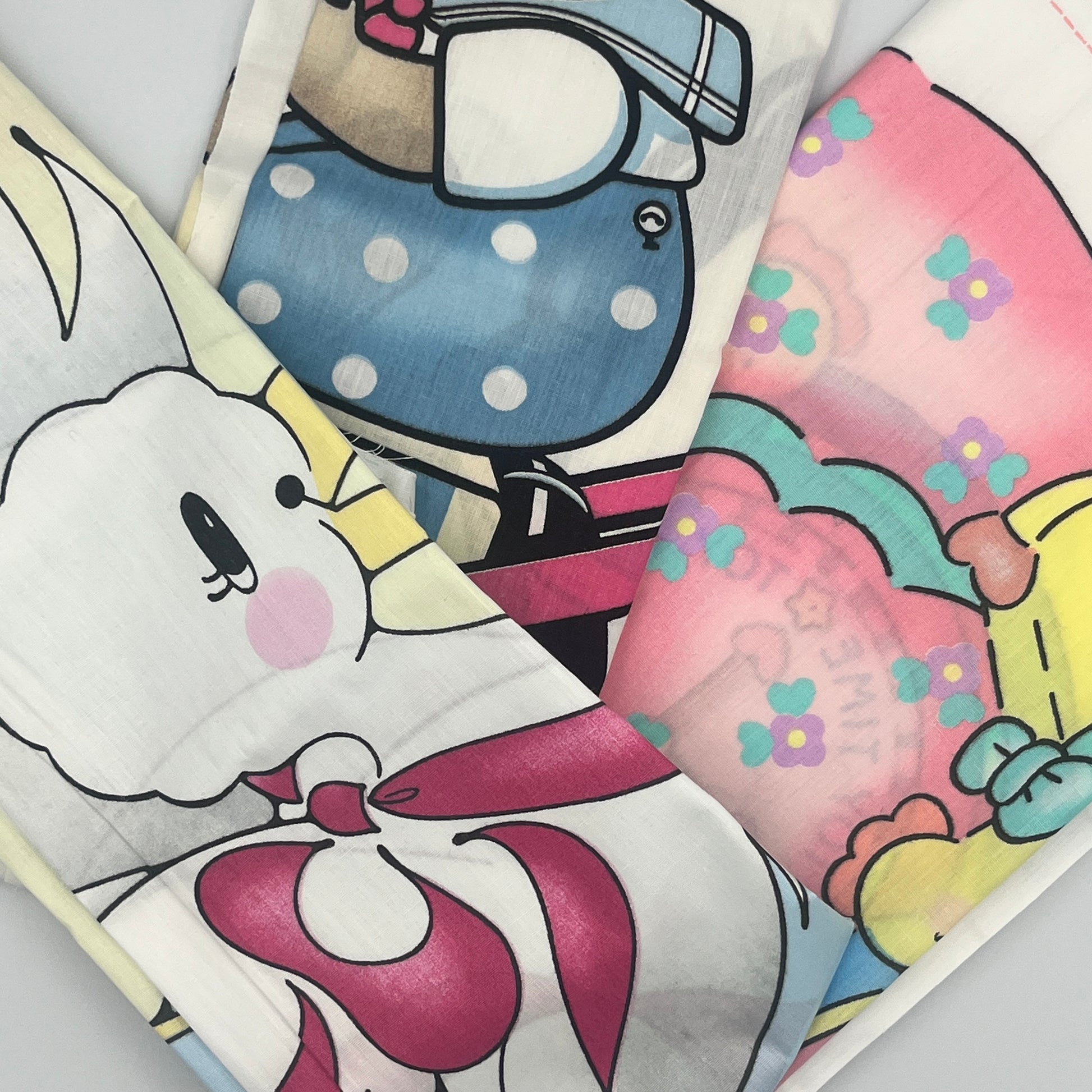 Adorable set of three vintage Daisy Kingdom nursery décor panels from the late 1980s/early 1990s. Perfect for a vintage nursery, sewing into wall hangings, pillows, or turn them into a piece of quirky apparel.