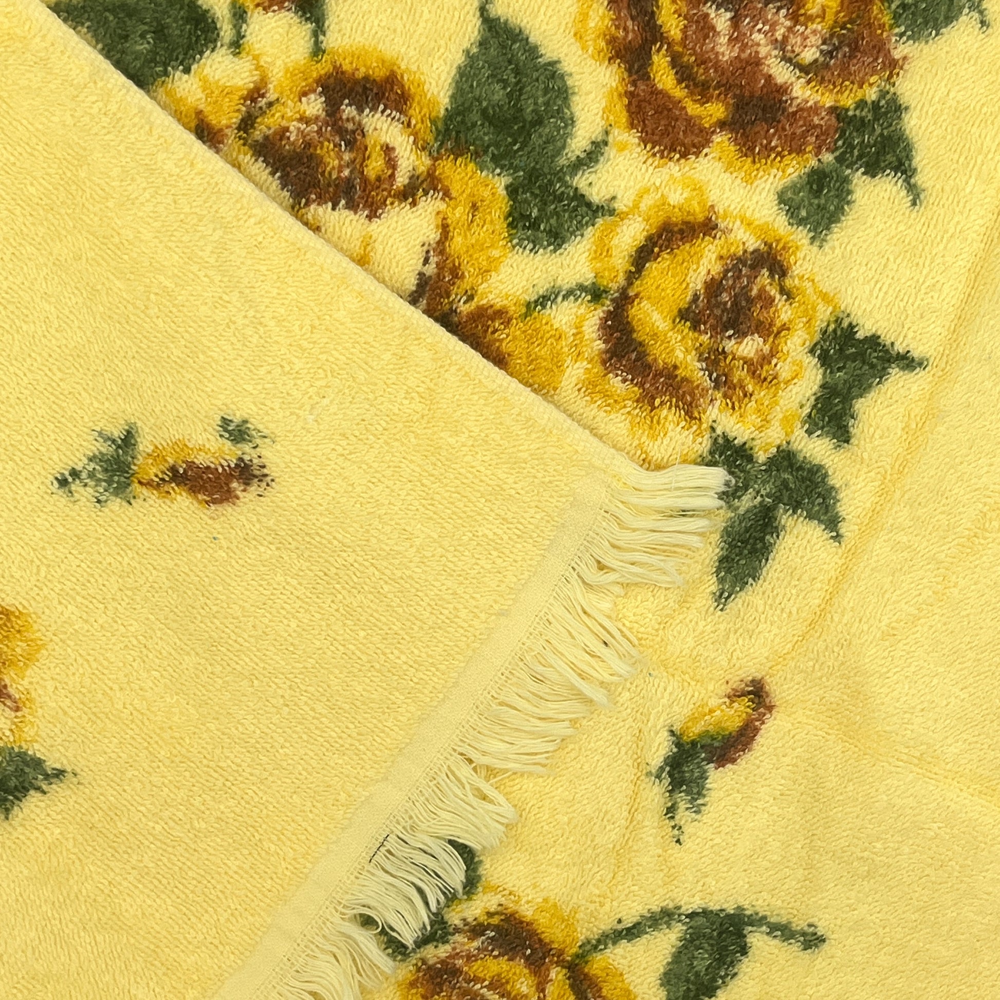 Mint Condition mid-century bath towel in yellows and golds. Perfect for upcycling or use as is in your mid mod decor!