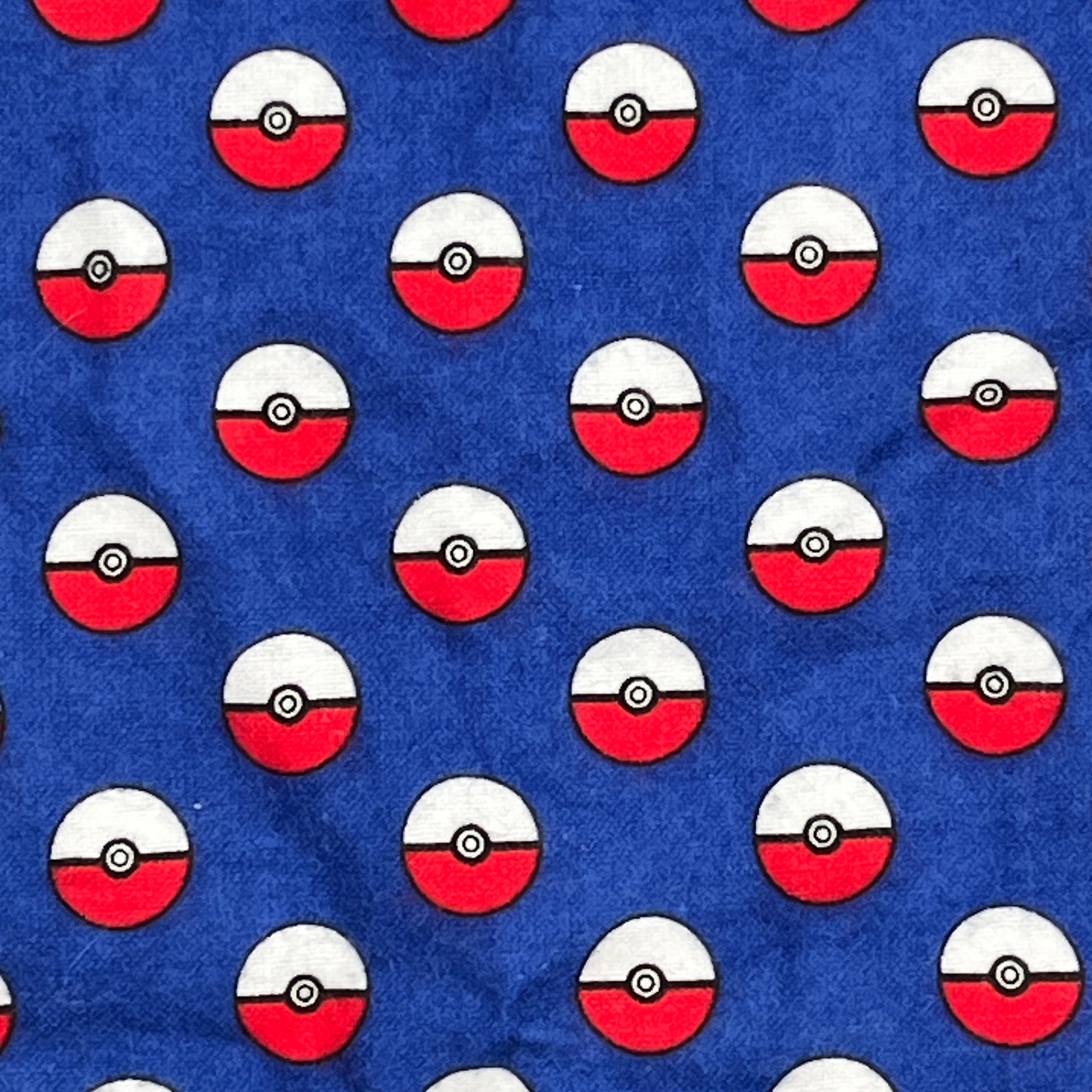 Bright, soft, and nostalgic, this royal blue flannel is covered in classic red-and-white Poké Balls. Perfect for pajamas, quilts, craft or apparel projects.