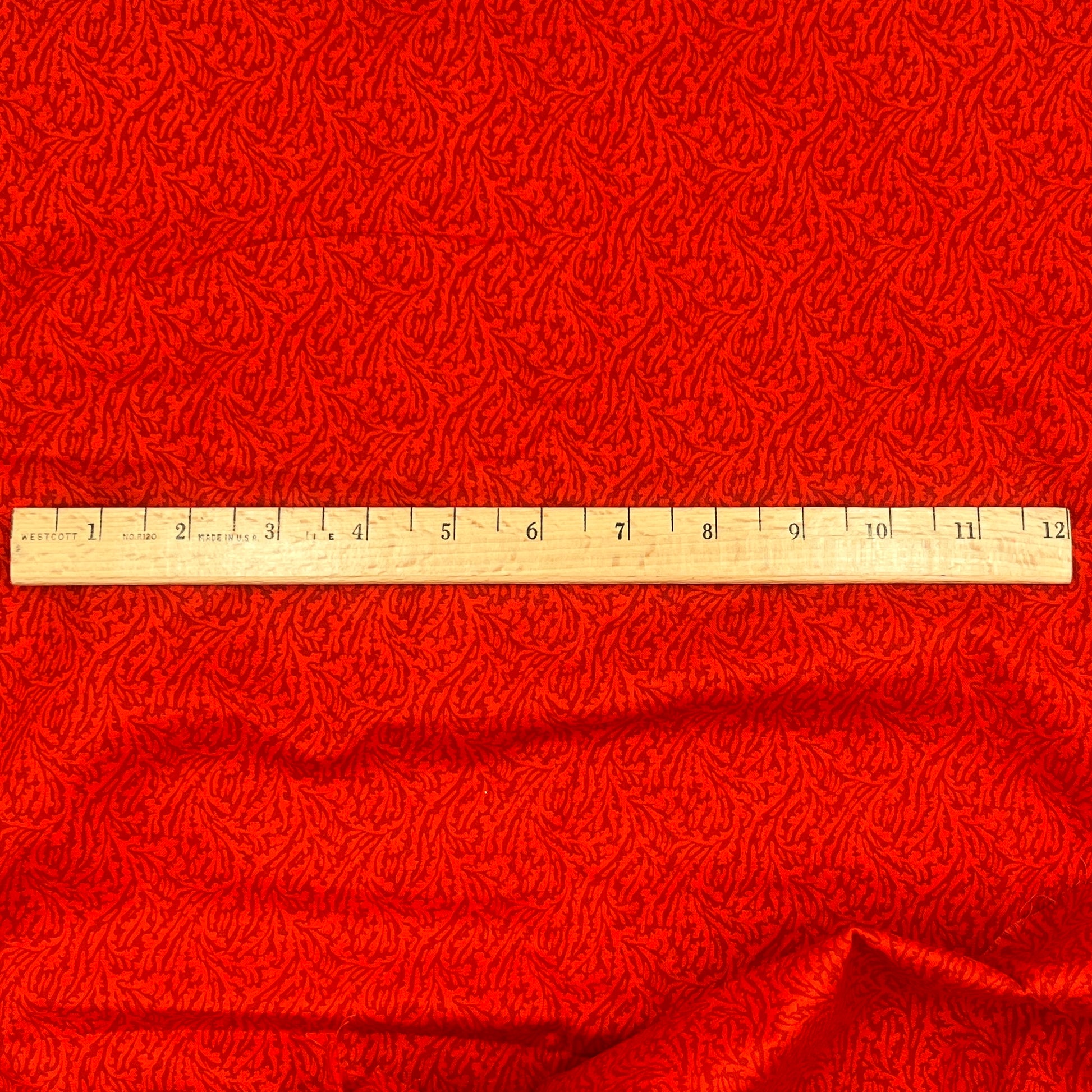 Red quilting cotton with a tone-on-tone leaf pattern. Perfect for holiday projects, accent blocks, or bindings. Unwashed, crisp, clean, quilt-ready condition.