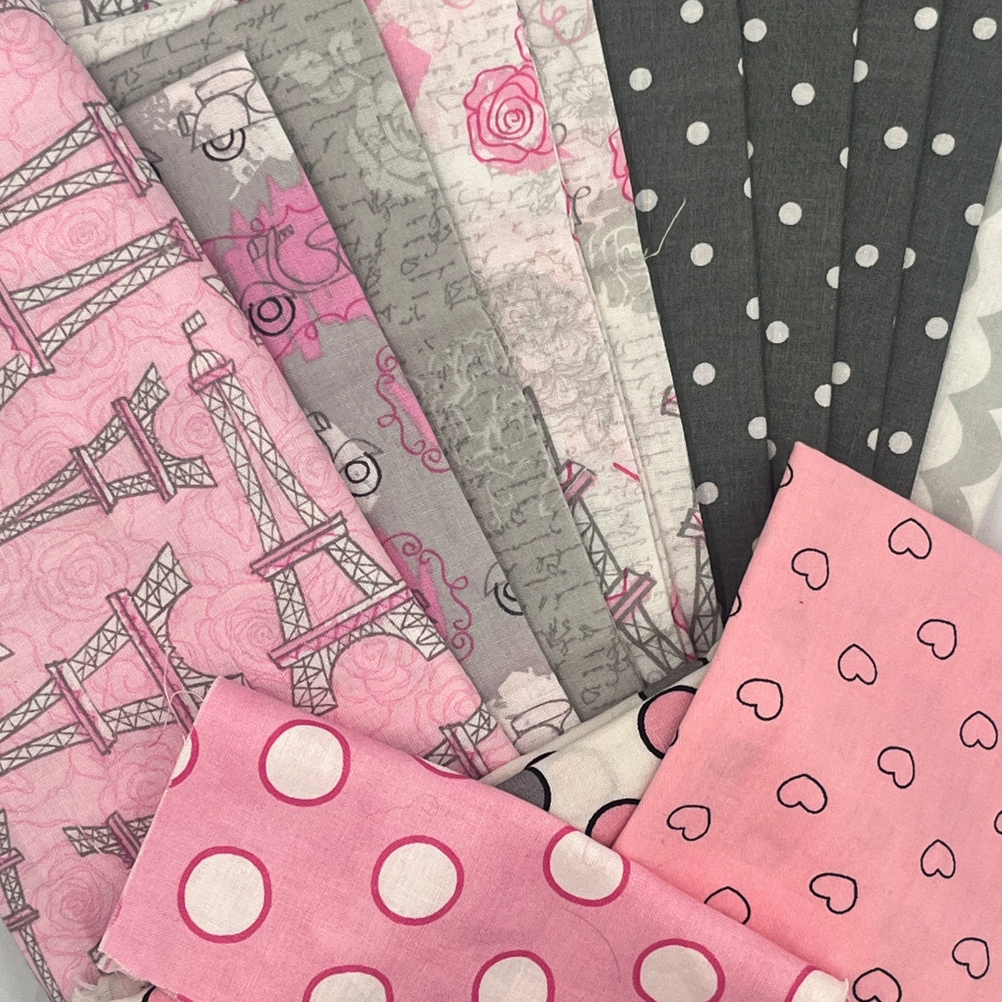 This perfectly coordinated bundle mixes soft greys and punchy pinks, Paris, scooters, dots & florals,