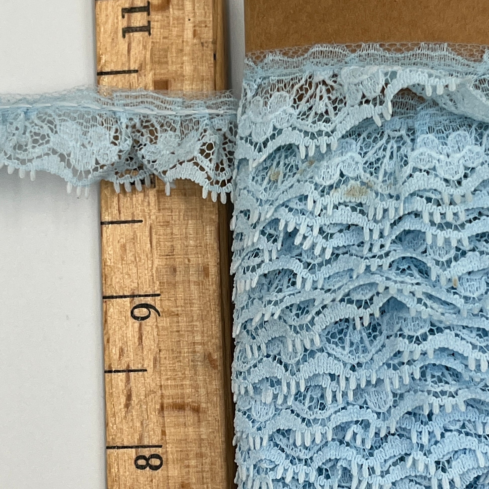 3 1/3 Yards, Baby Blue Ruffled Lace Trim, Delicate Vintage-Style