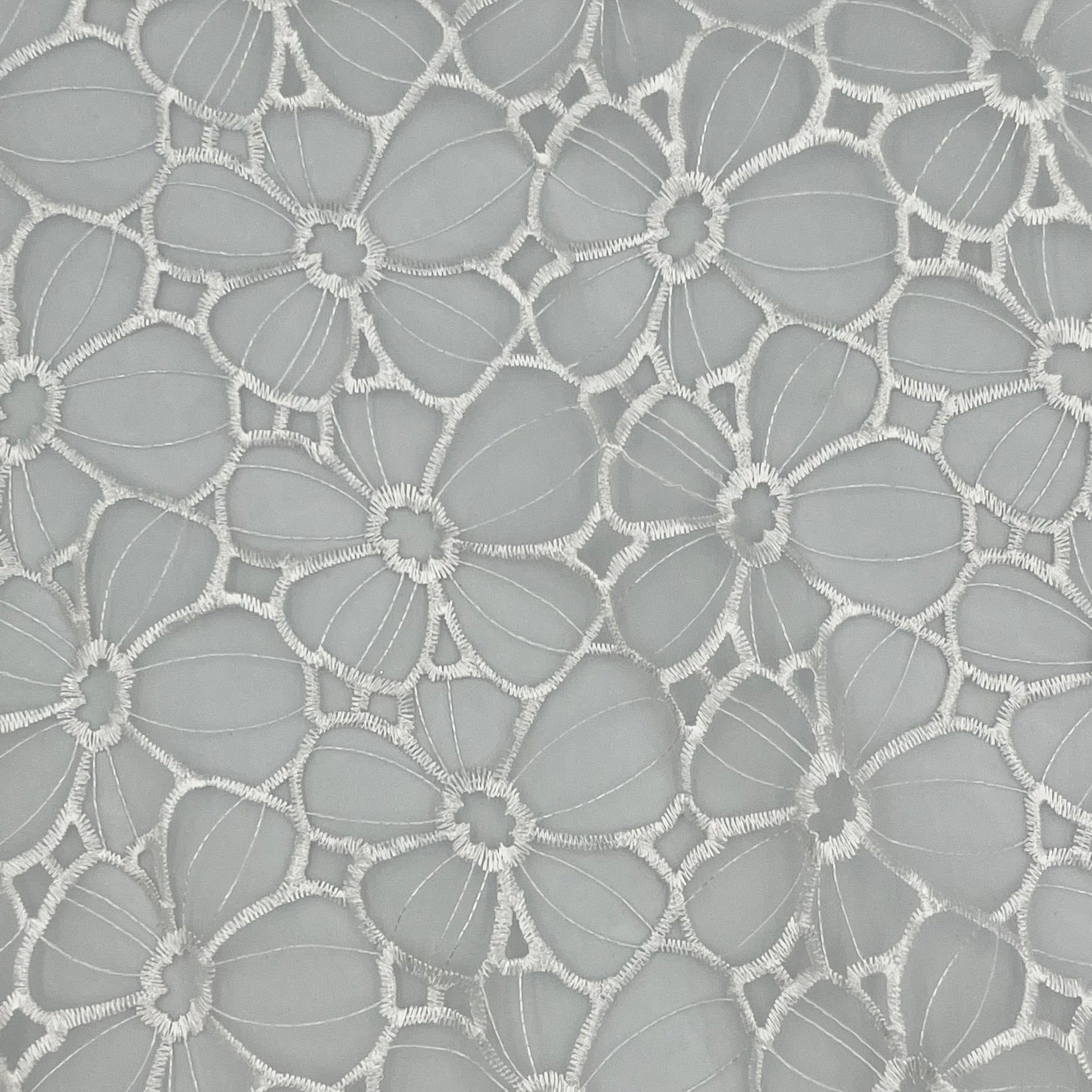 2 Yards White Floral Structured Organza - Polyester