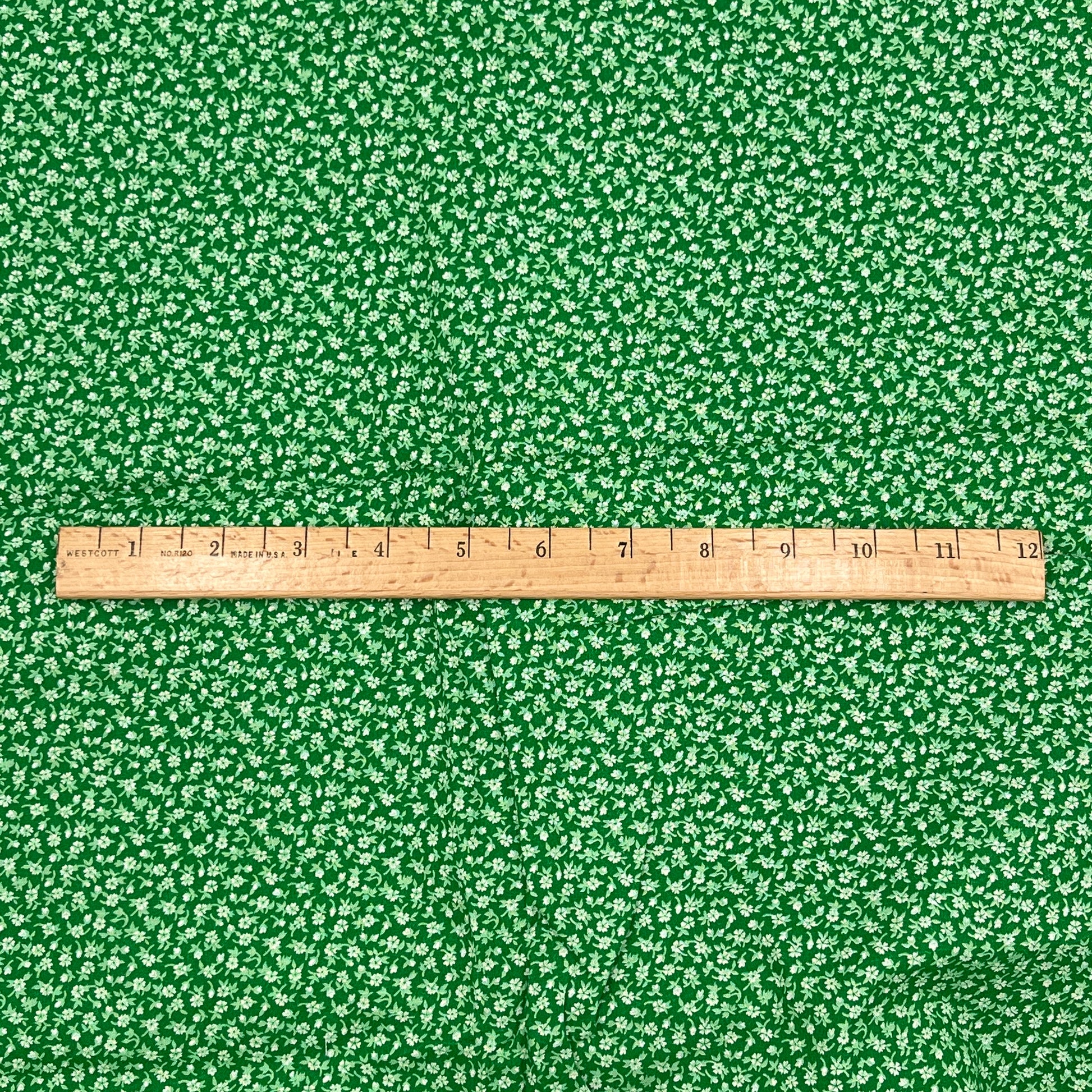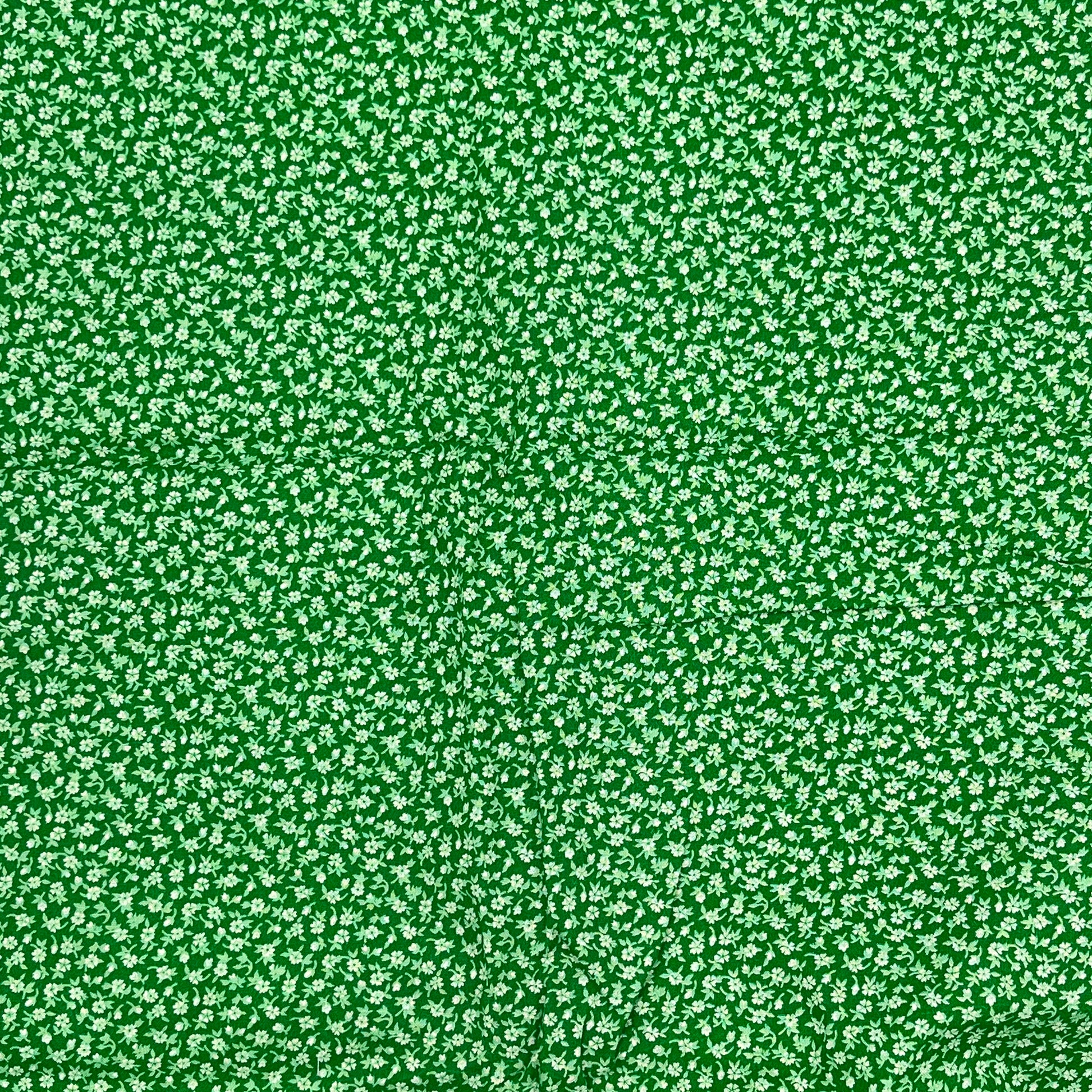 Classic calico in a bright grass green with tiny white floral clusters. Crisp, clean cotton in a cheerful color perfect for a sundress, a baby quilt, or a cottage core apron.