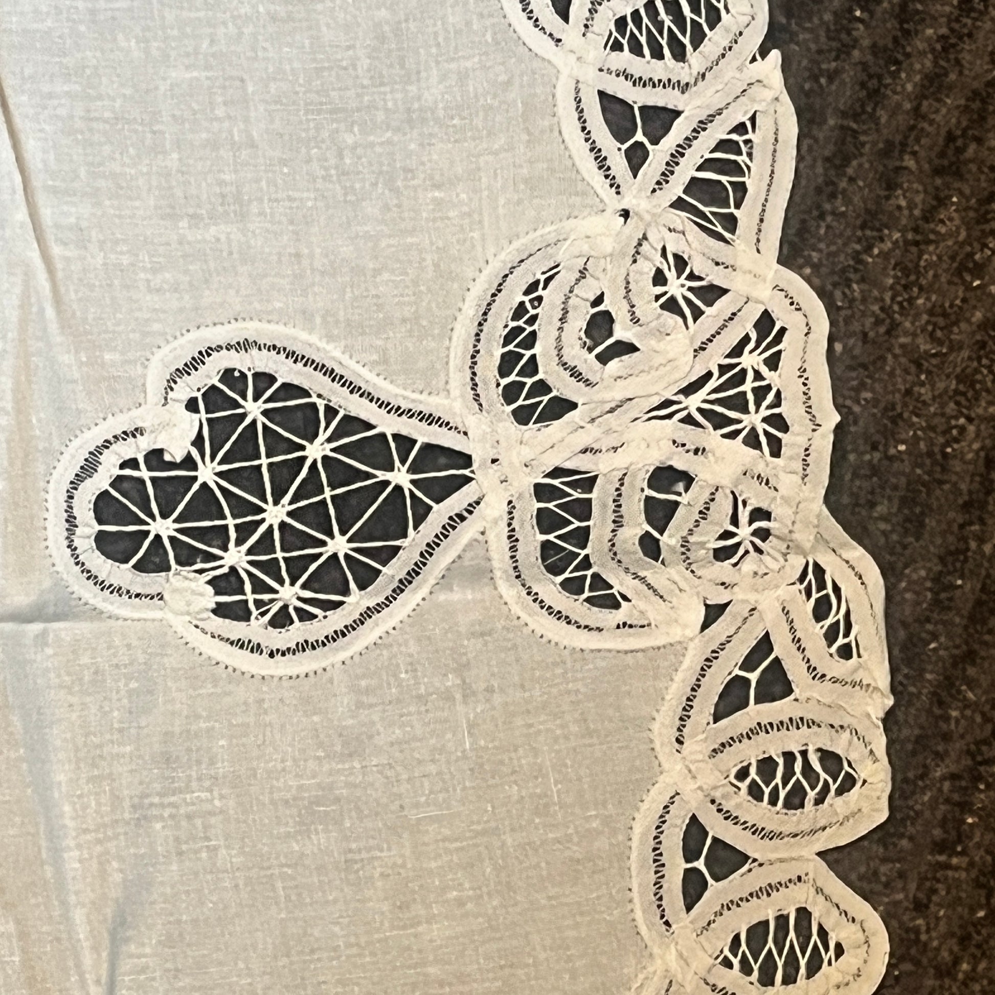 White Cotton Battenberg lace tree skirt, the perfect vintage-inspired accent for a traditional or romantic holiday tree.